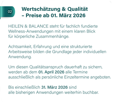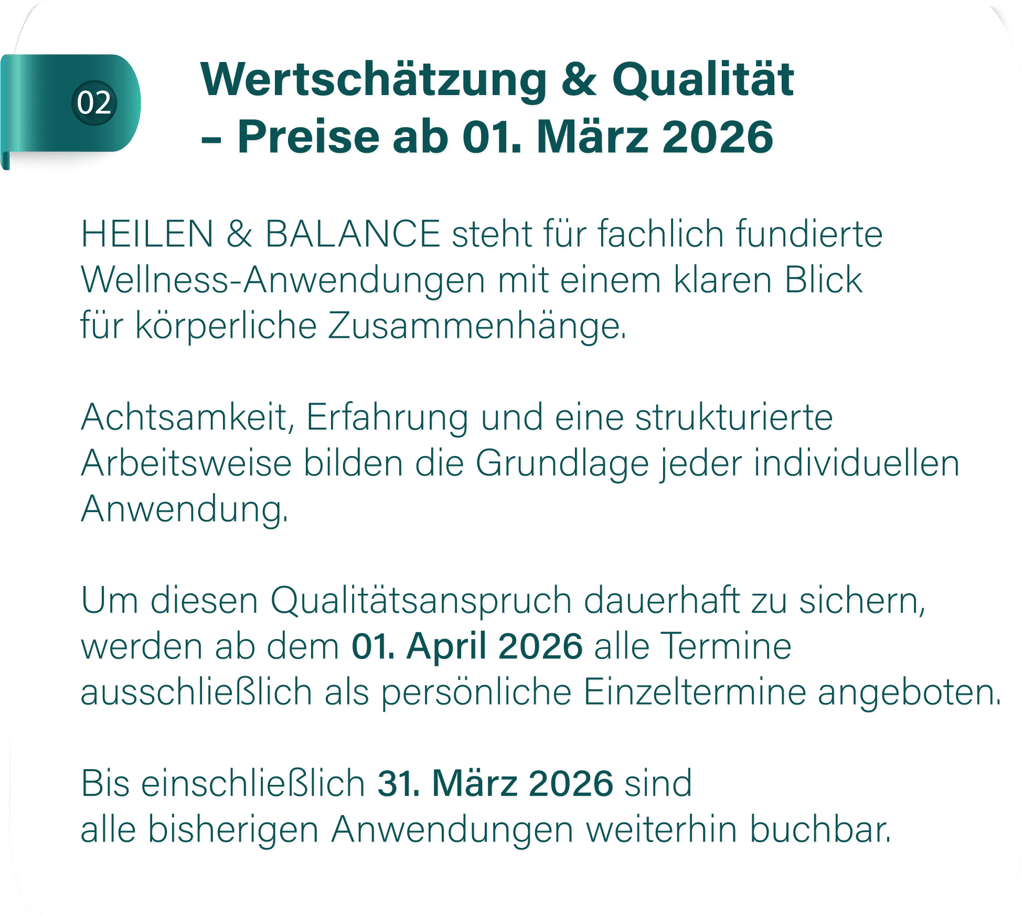 HEILEN & BALANCE steht für Ruhe, Qualität und bewusste Zeit.