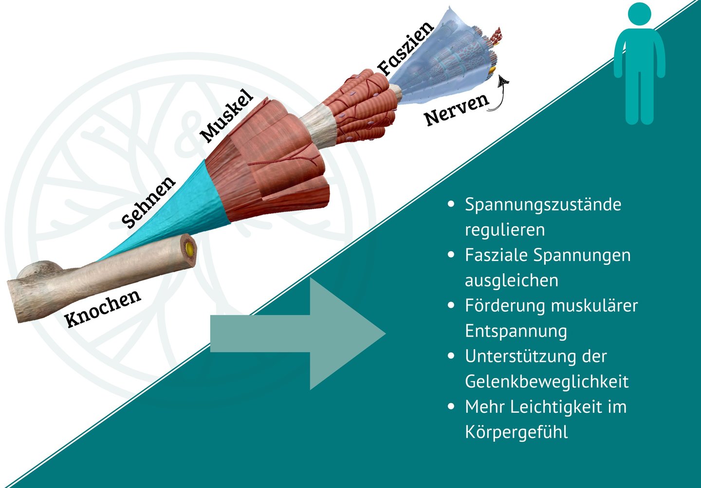 Muskuläre Strukturen, fasziale Spannungszüge und Gelenkbereiche werden nicht isoliert betrachtet, sondern als funktionelle Einheit verstanden.